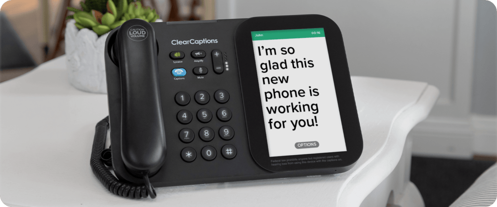 The ClearCaptions Phone provides near real-time captions of your phone conversations on the phone’s large, easy-to-read screen. The ClearCaptions service is funded by a federally managed program, which makes the phone and its captions available at no cost to qualified Americans.